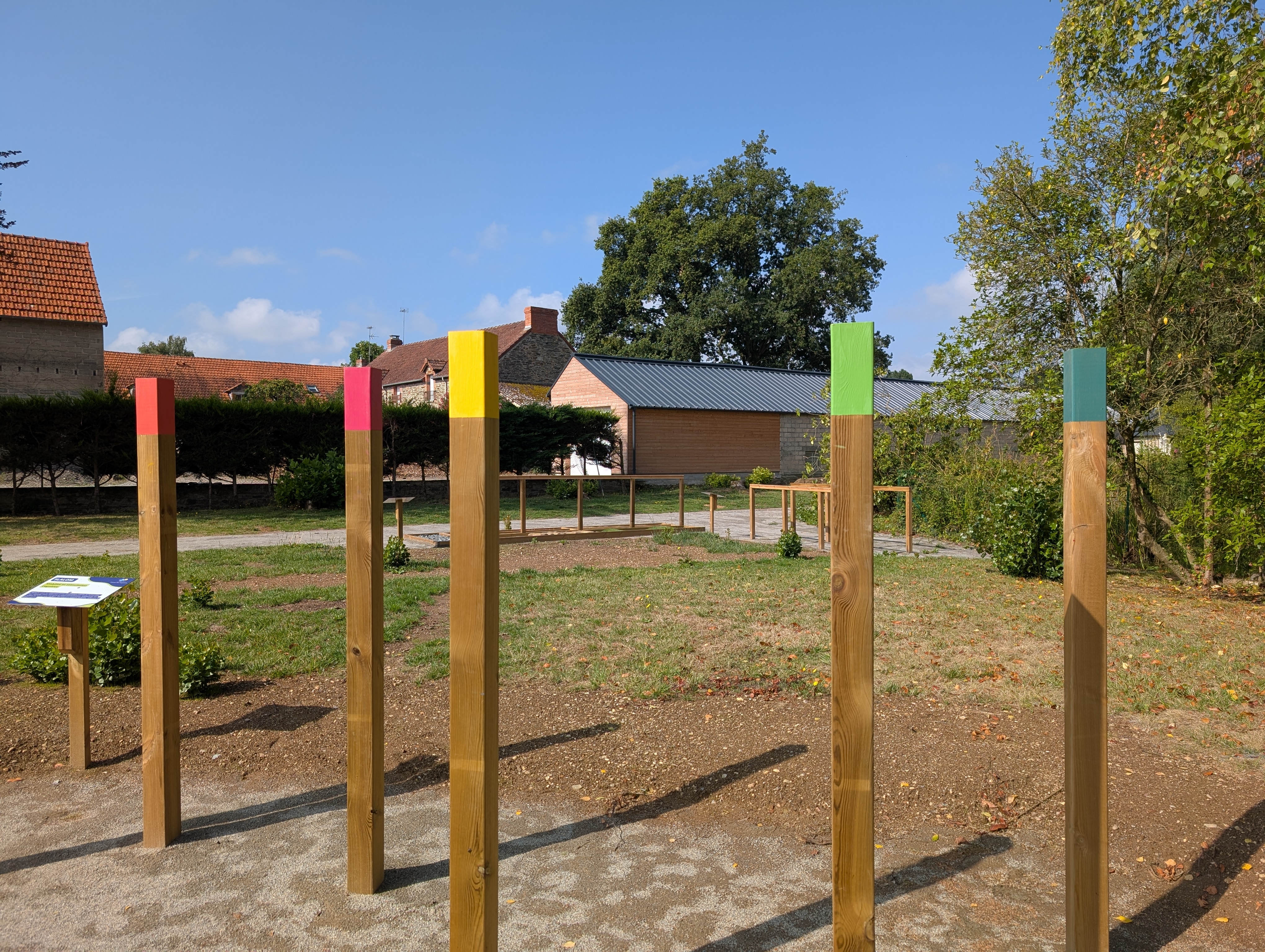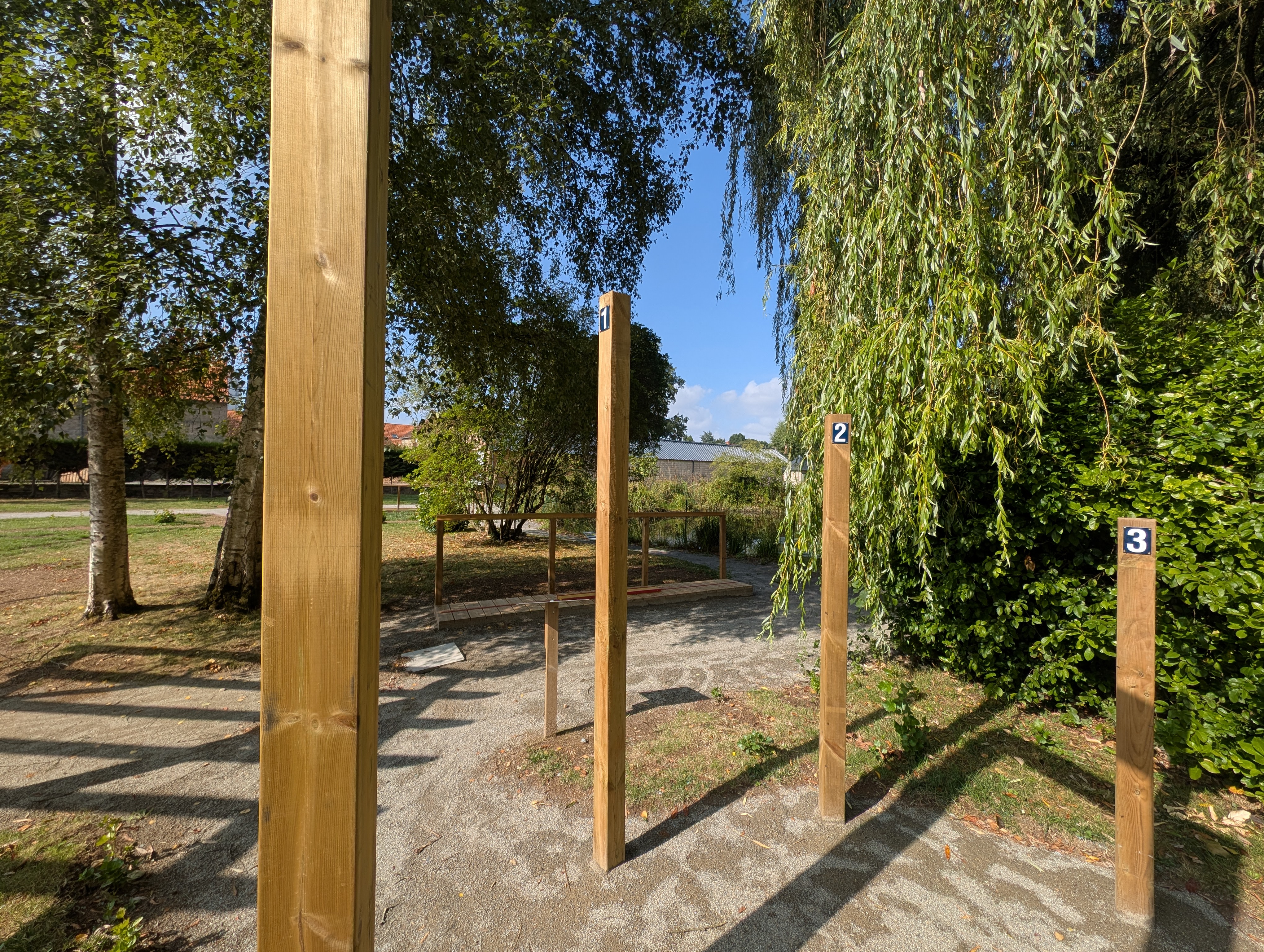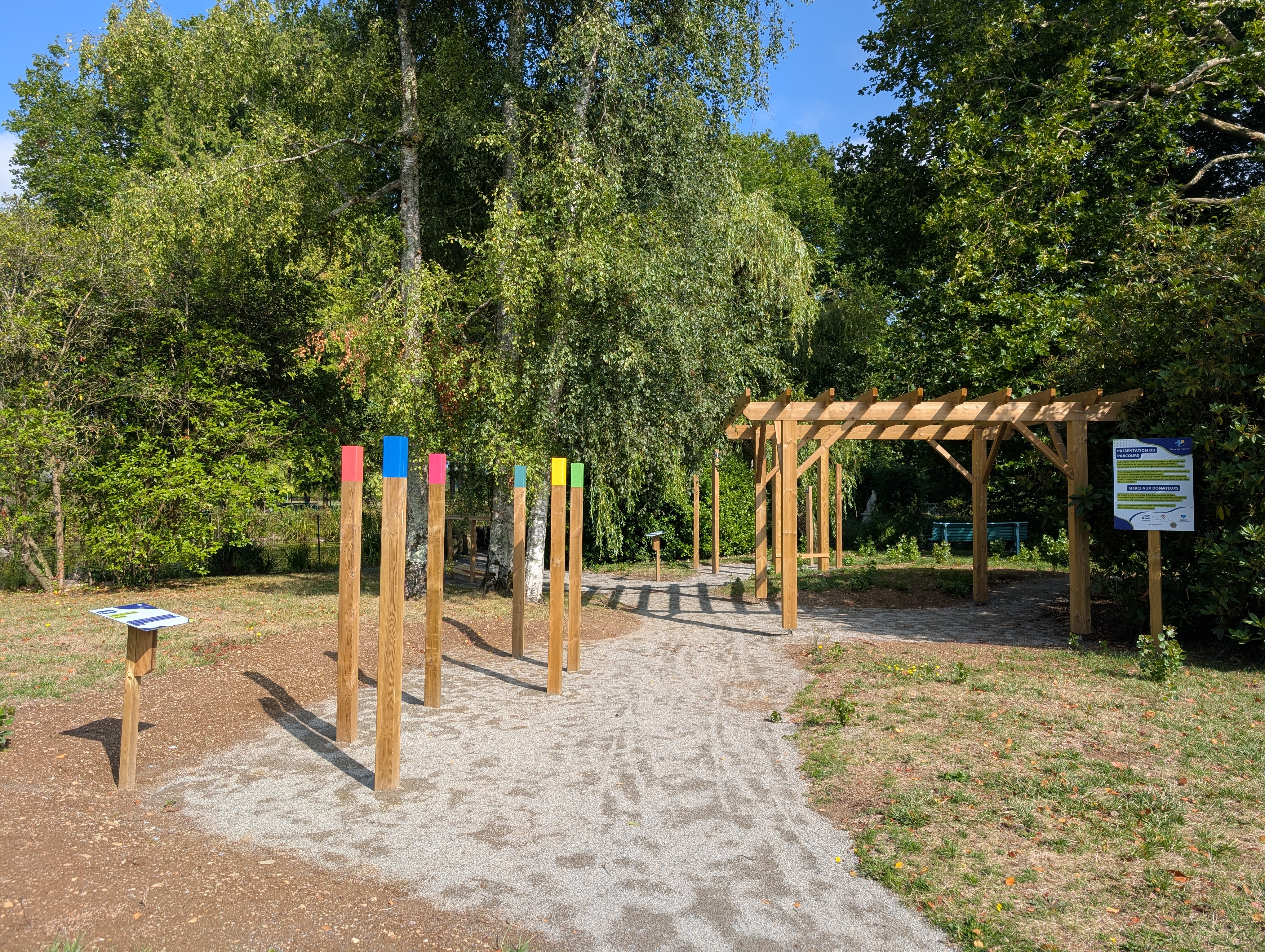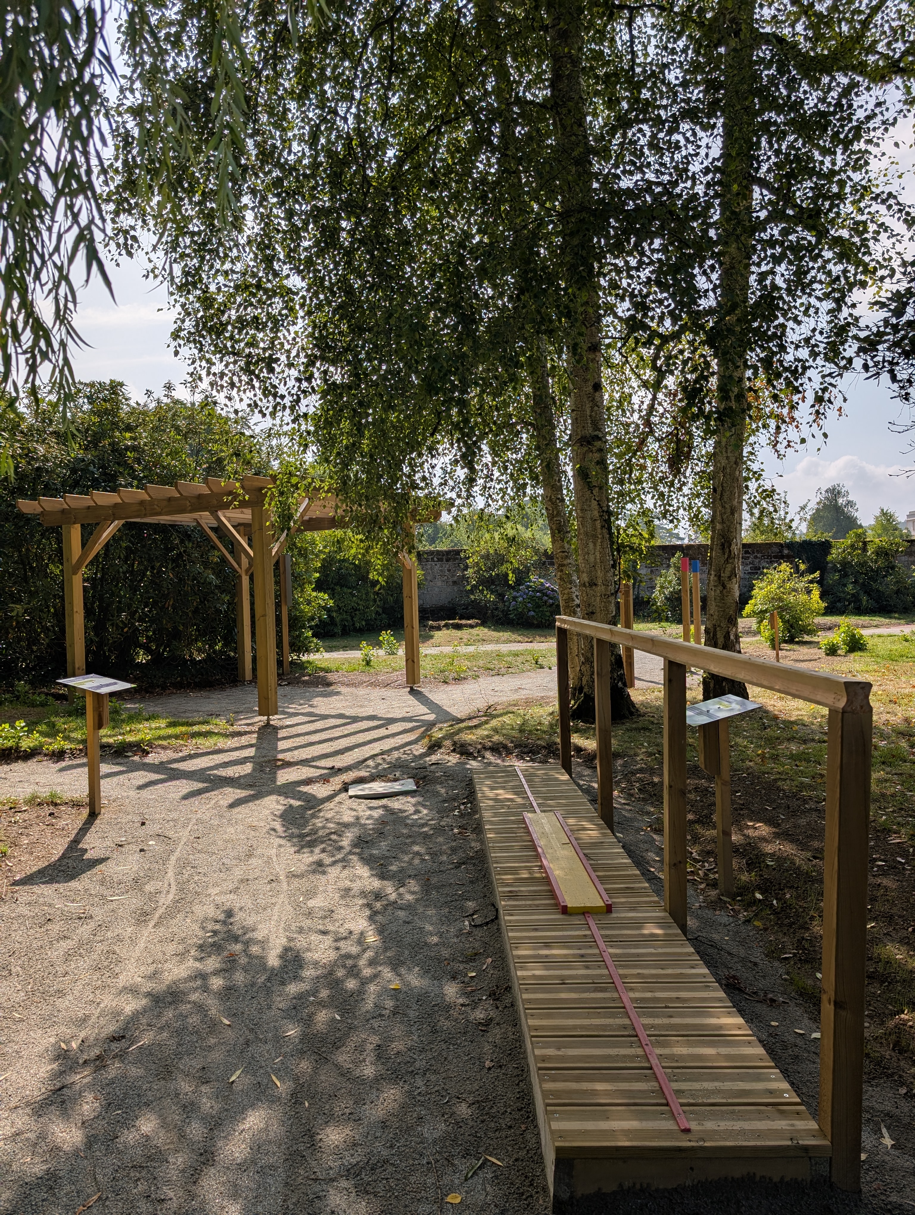 A partir des demandes des enseignants en activité physique adaptée (EAPA) de la clinique, le parcours a été créé par les jeunes en formation menuiserie au Lycée Saint-Joseph La Salle de Vannes, sur le modèle d’un parcours déjà réalisé à Noyal-sur-Vilaine (35), avec l’appui de leur professeur M. Pascal THEBAUT.
