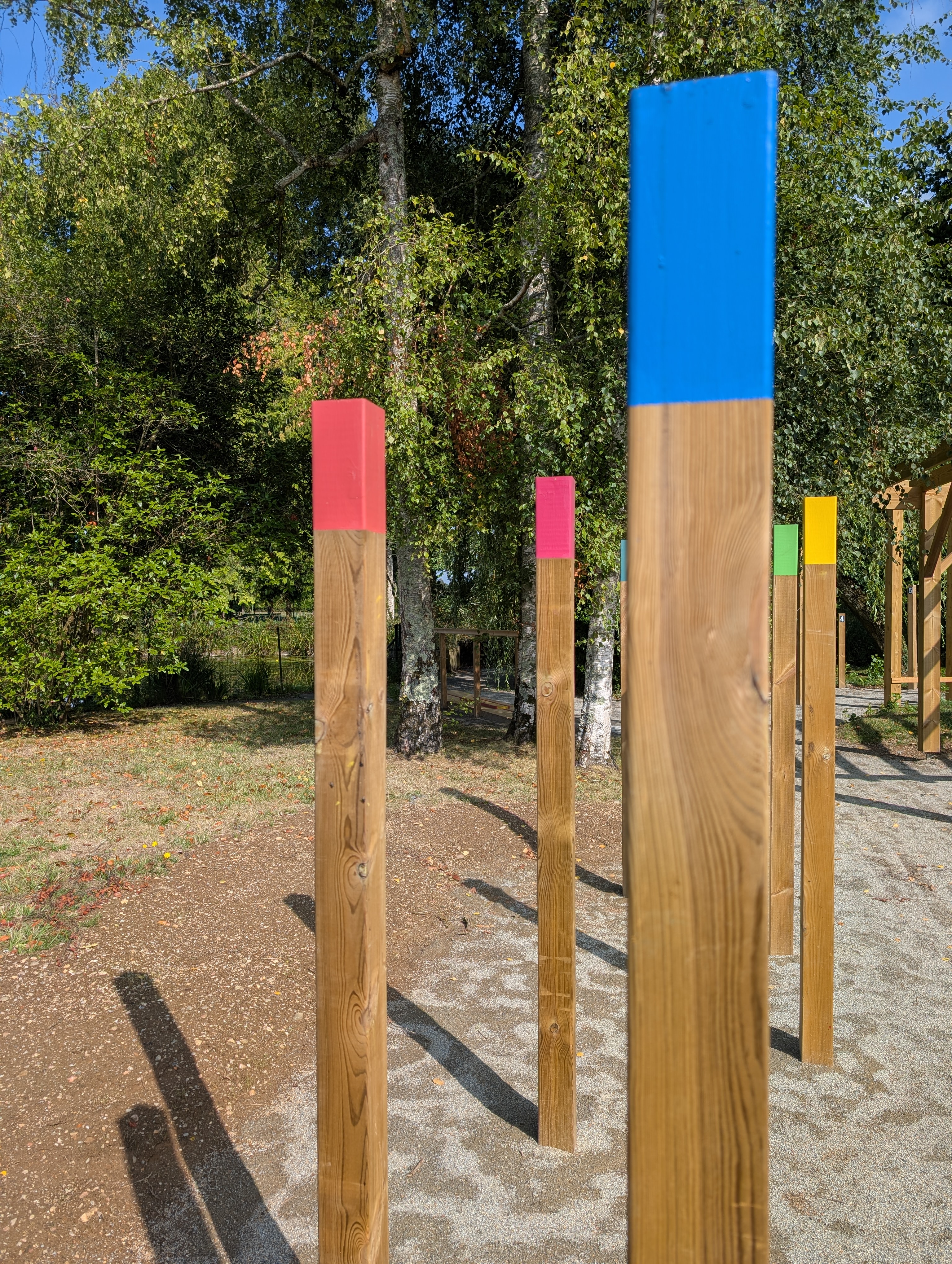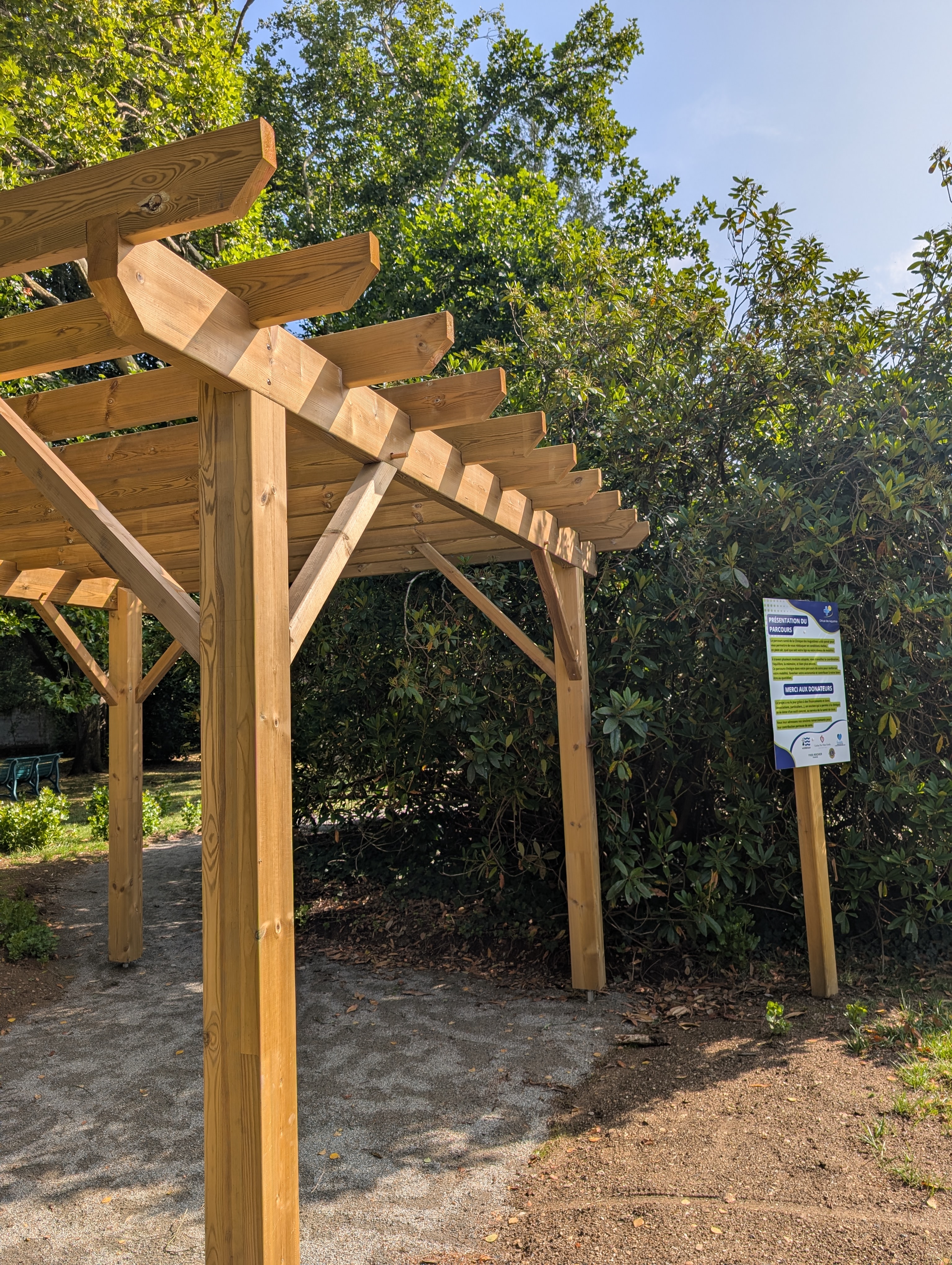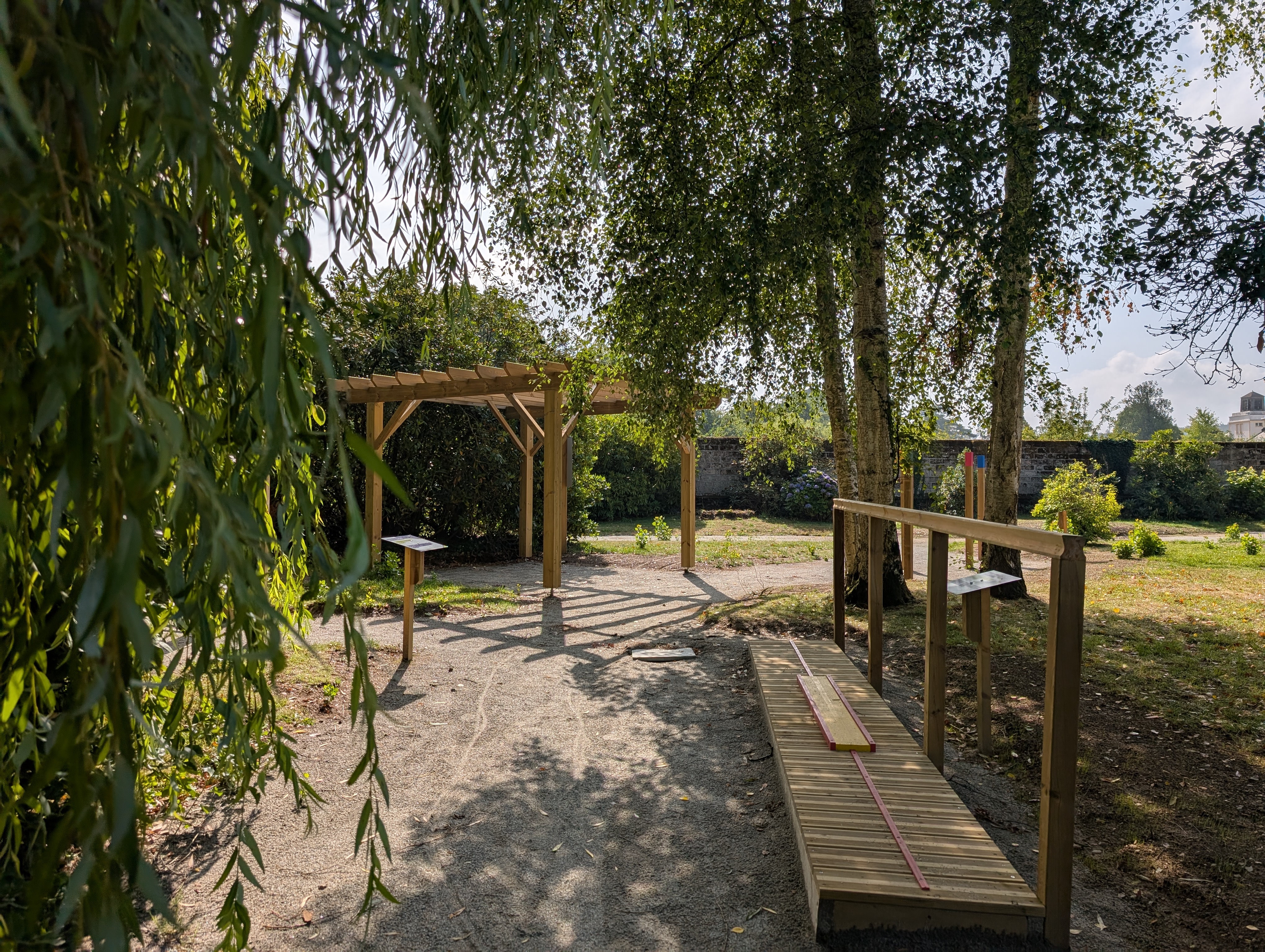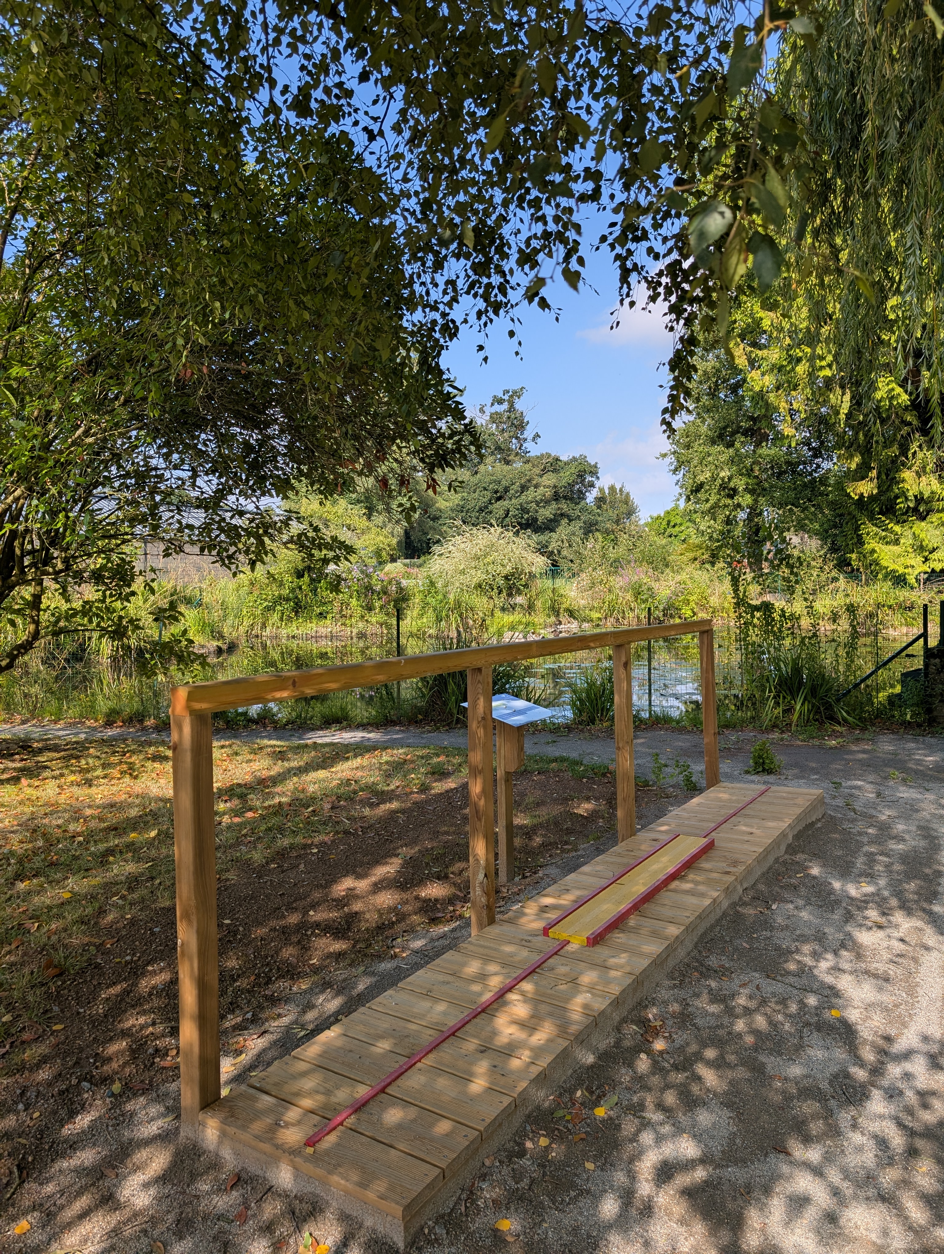 A partir des demandes des enseignants en activité physique adaptée (EAPA) de la clinique, le parcours a été créé par les jeunes en formation menuiserie au Lycée Saint-Joseph La Salle de Vannes, sur le modèle d’un parcours déjà réalisé à Noyal-sur-Vilaine (35), avec l’appui de leur professeur M. Pascal THEBAUT.