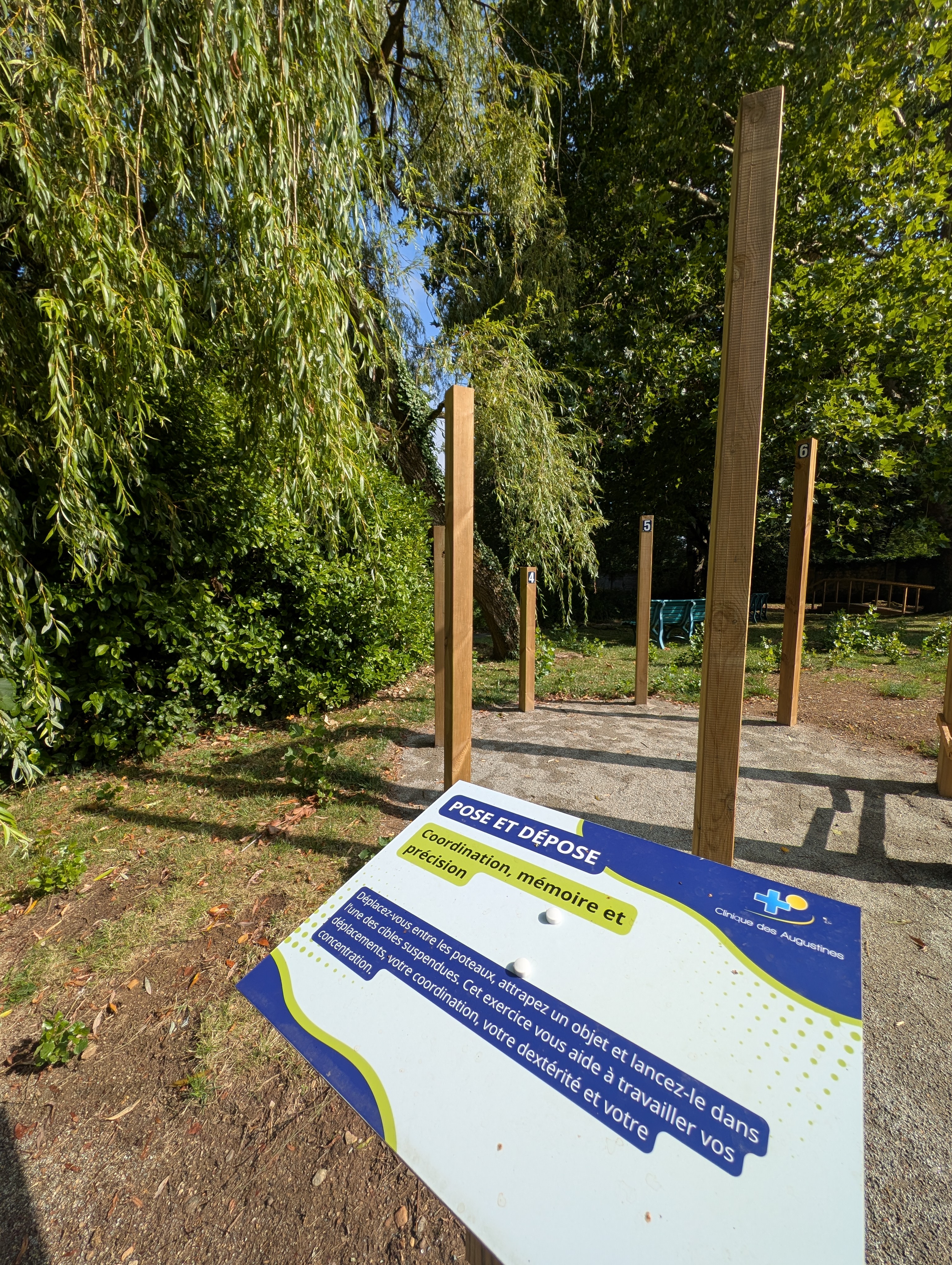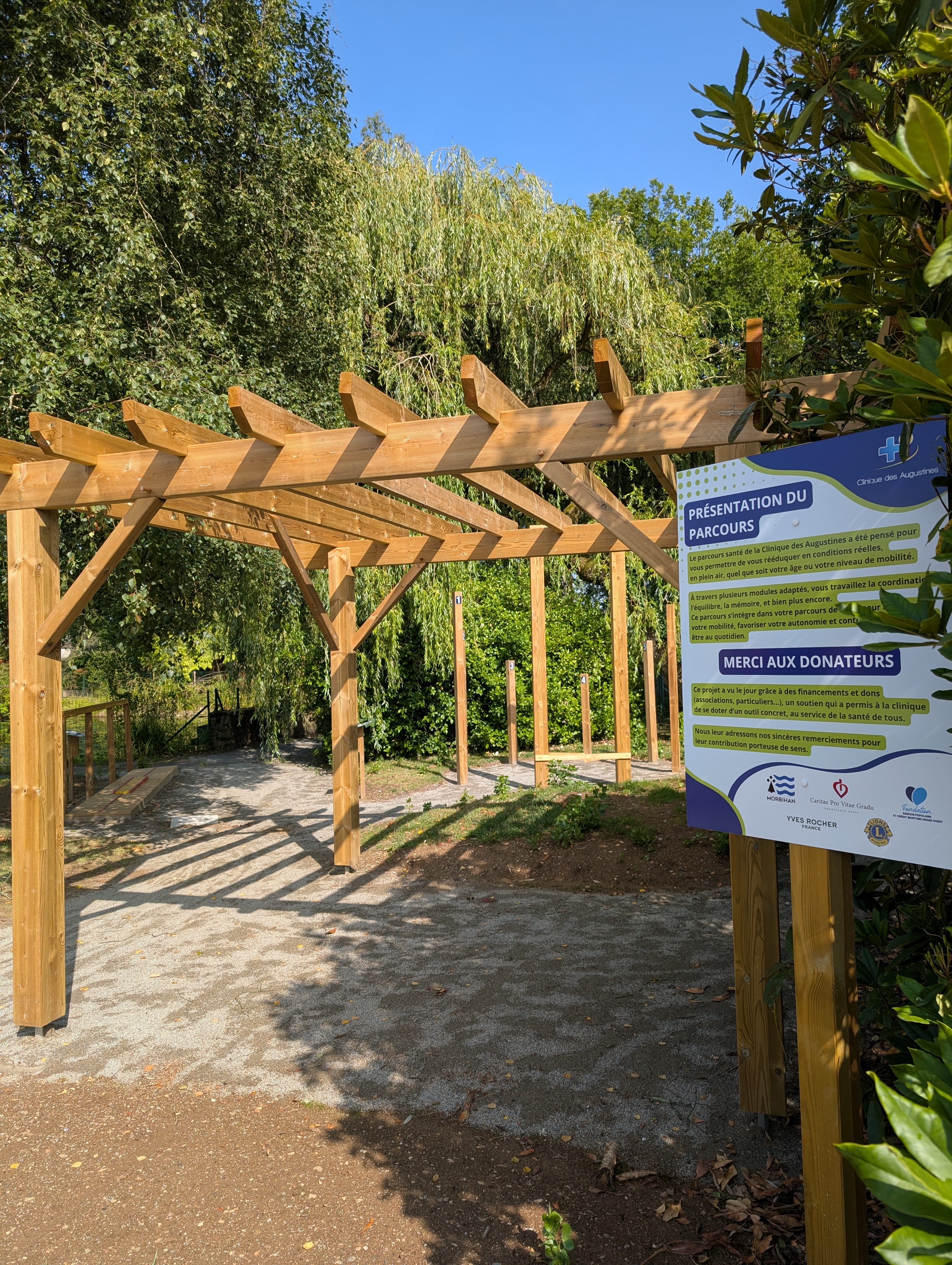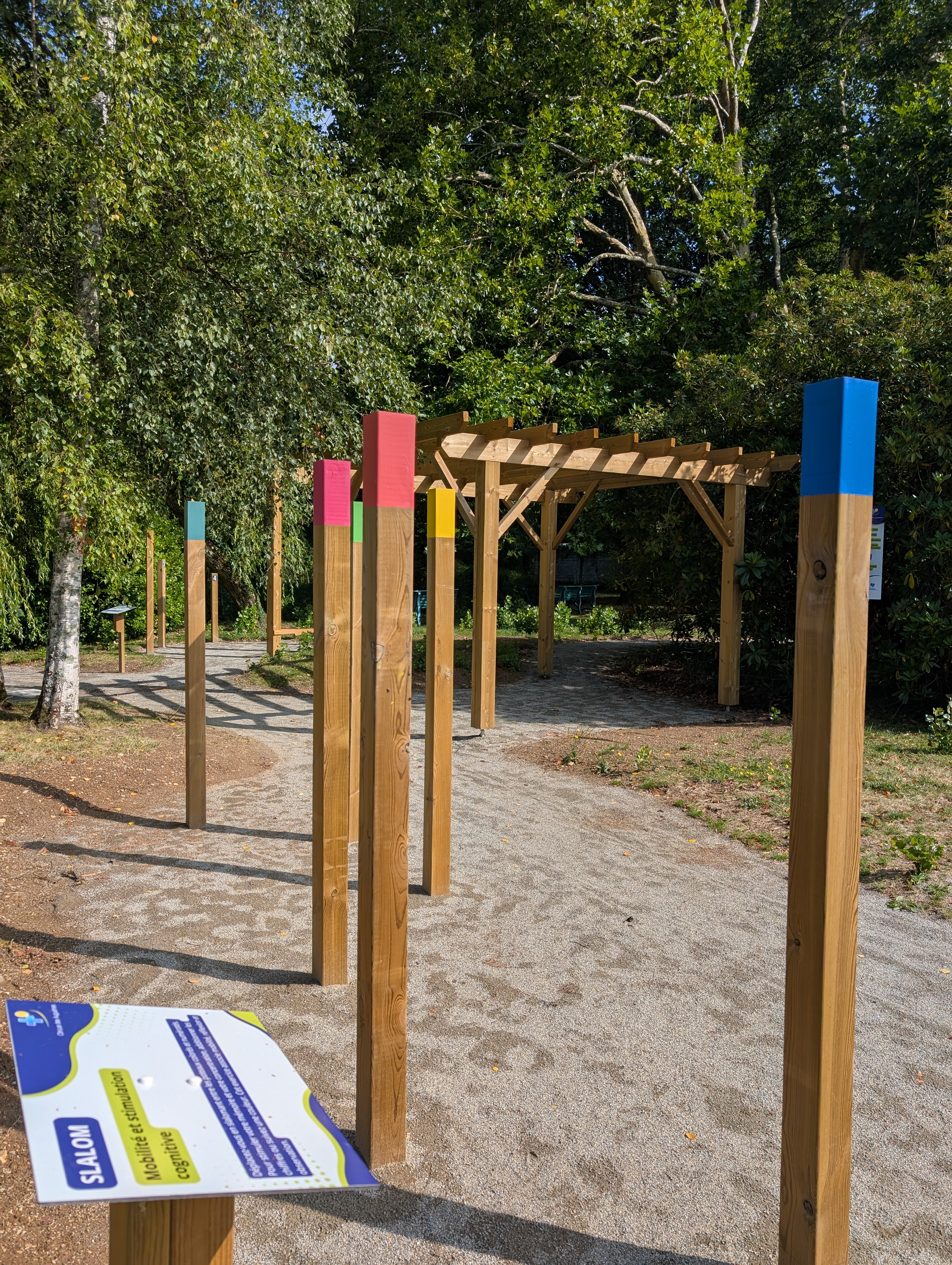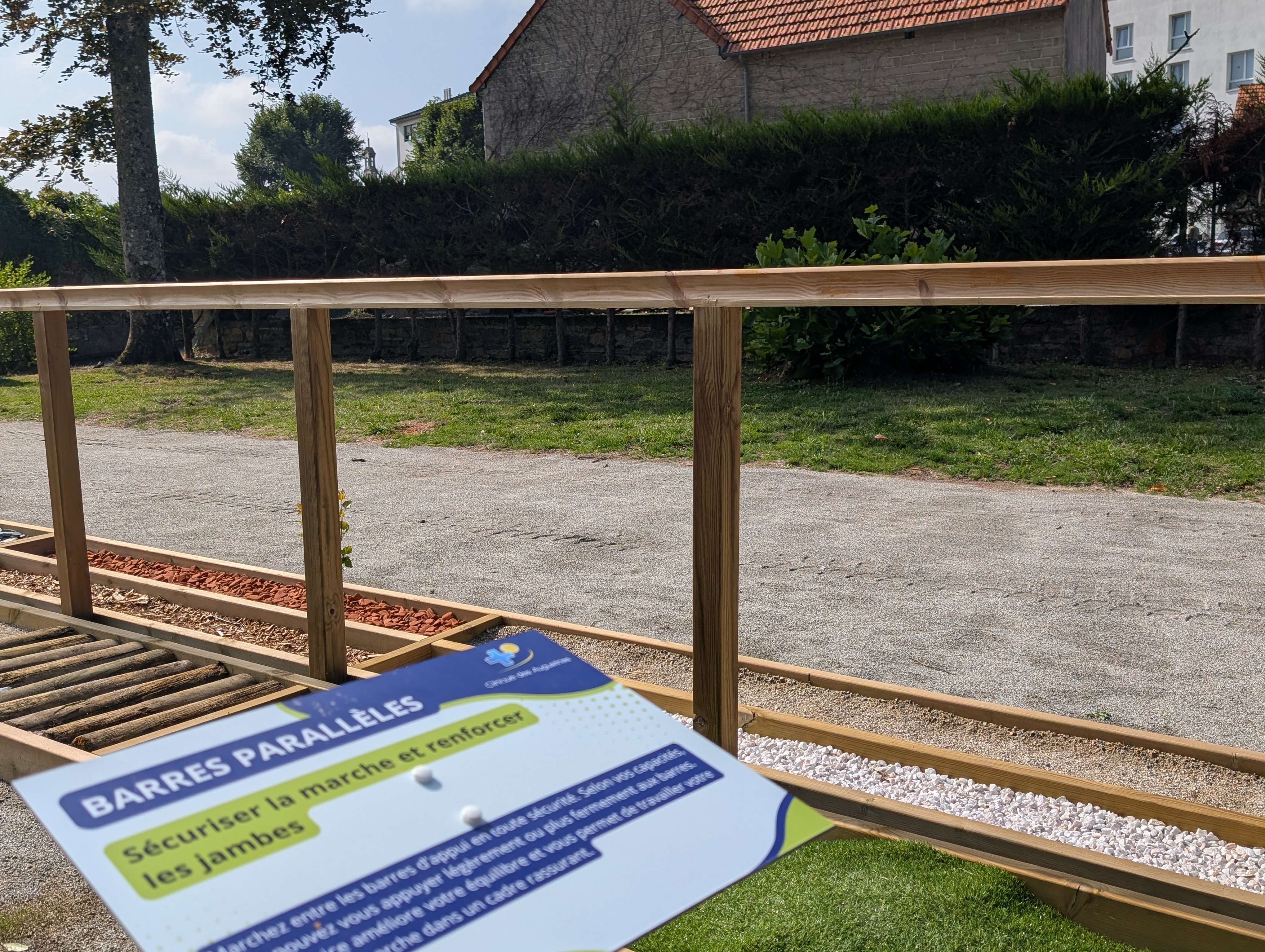 - ainsi qu’un parcours de santé, d’une surface de 300 m², qui comprend huit agrès pour permettre la rééducation des patients tout en travaillant la coordination, l’équilibre et la mémorisation.