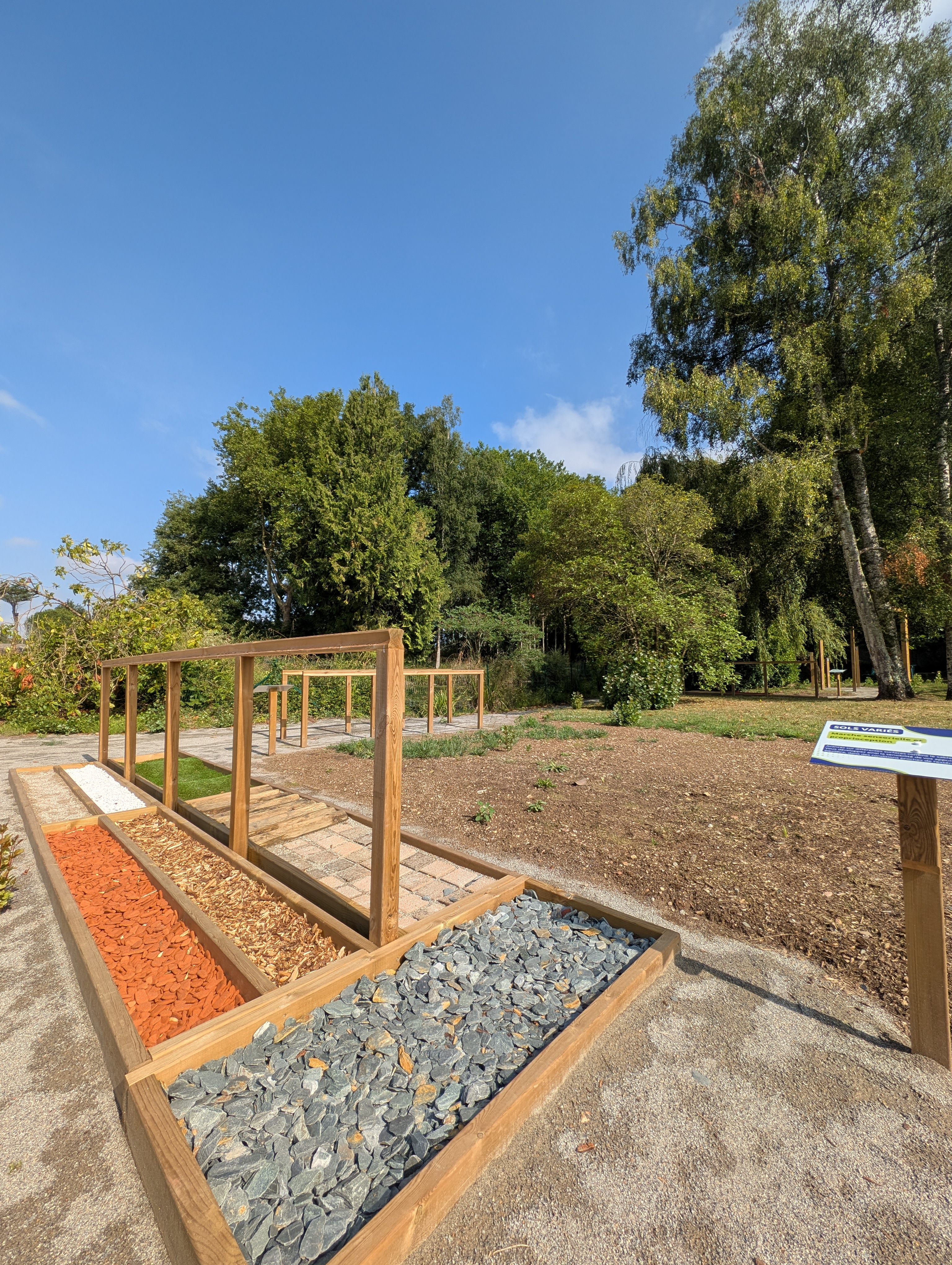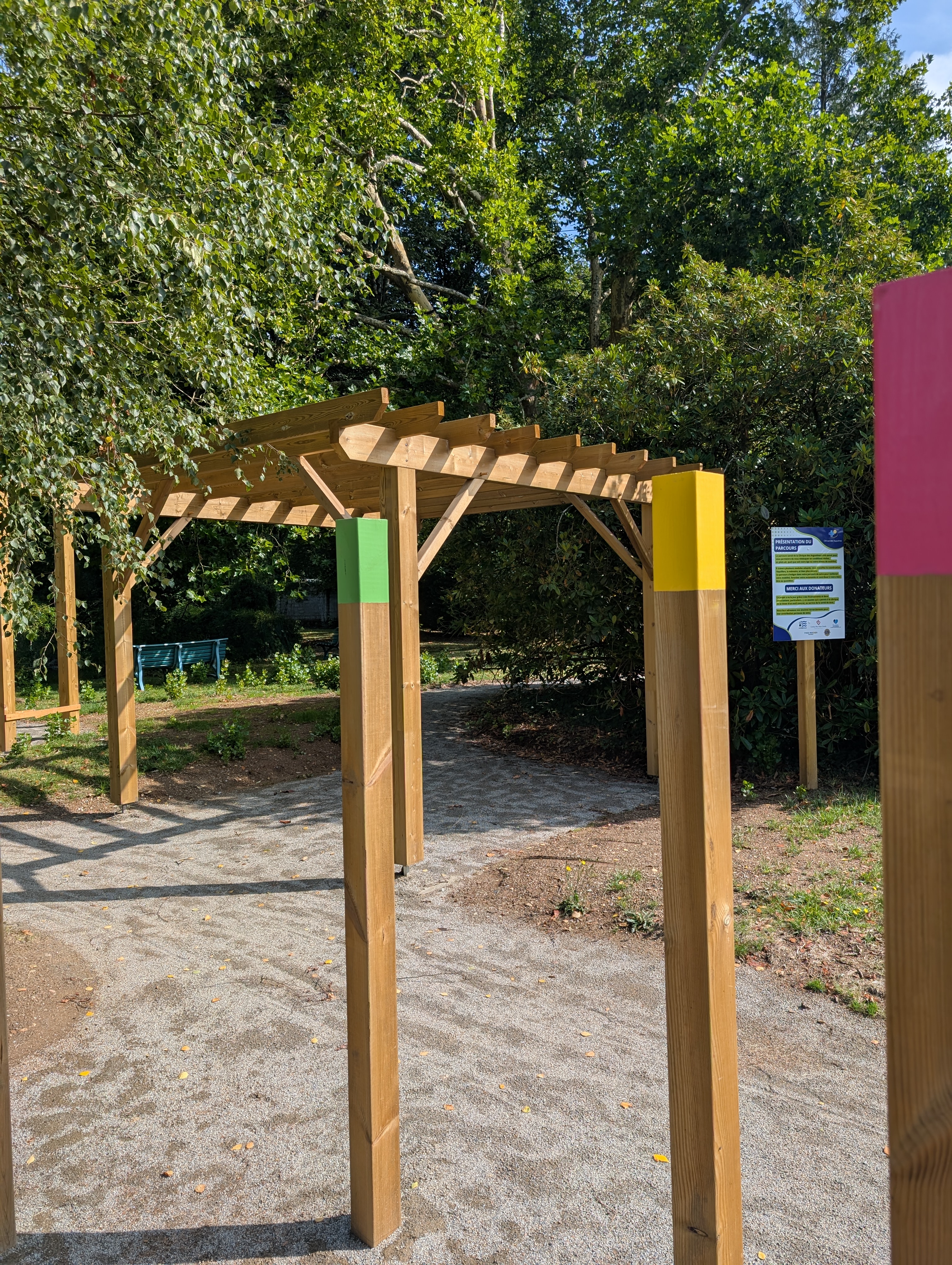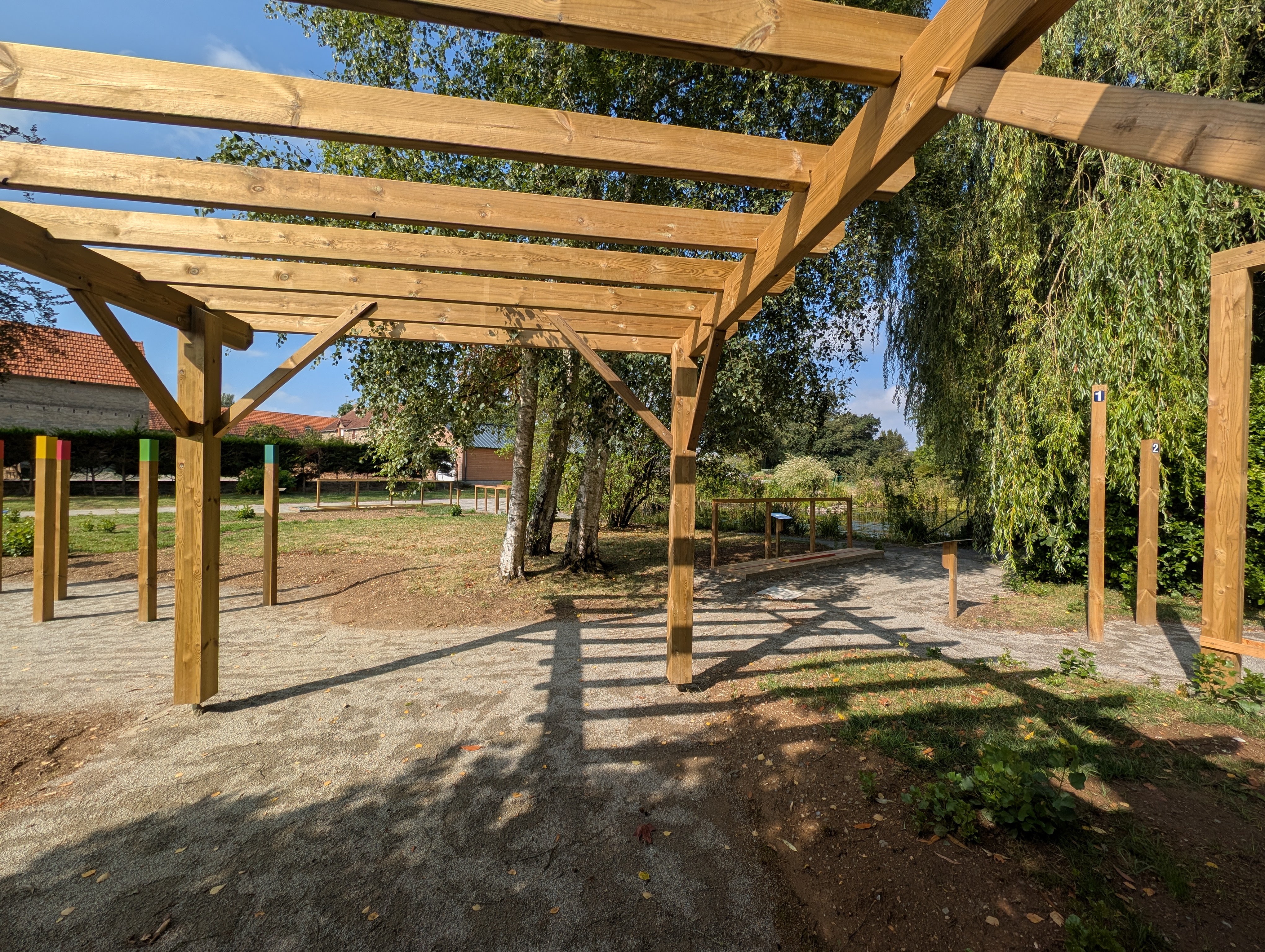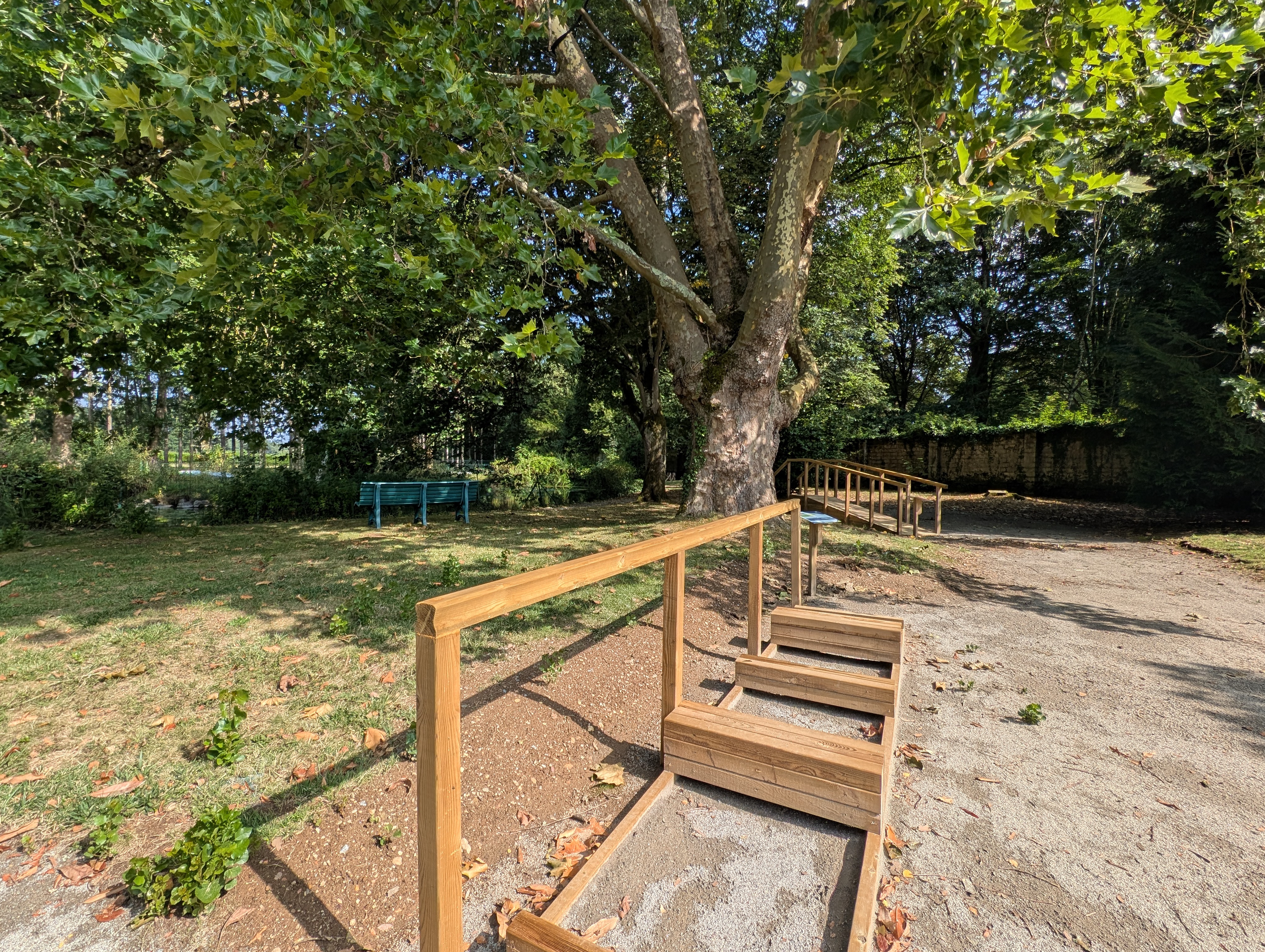 - ainsi qu’un parcours de santé, d’une surface de 300 m², qui comprend huit agrès pour permettre la rééducation des patients tout en travaillant la coordination, l’équilibre et la mémorisation.