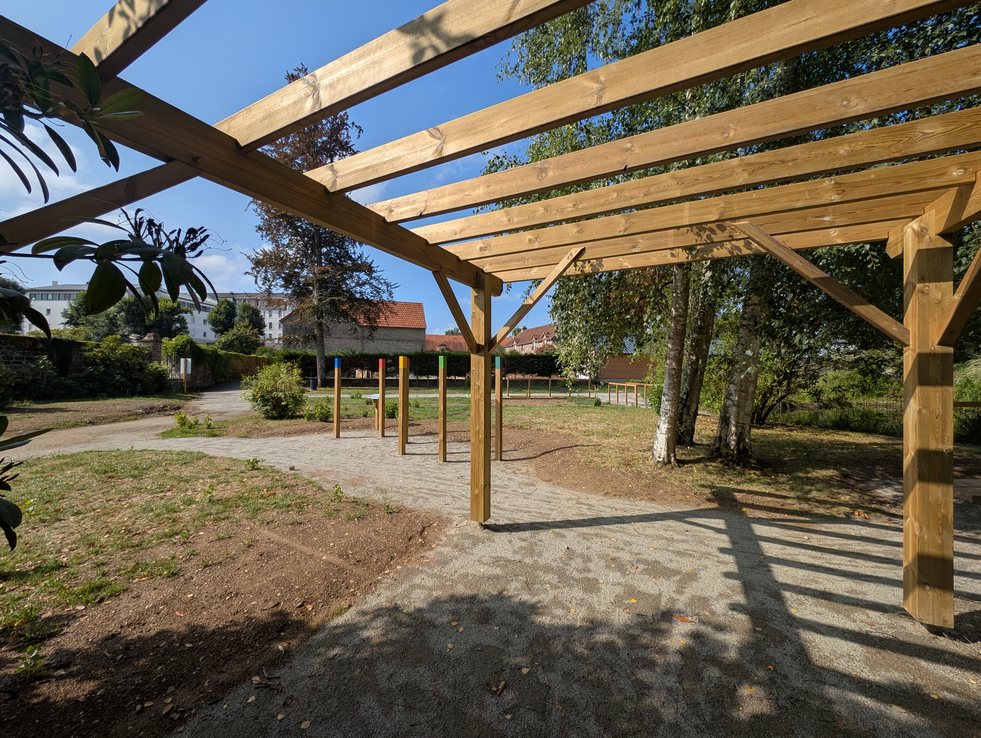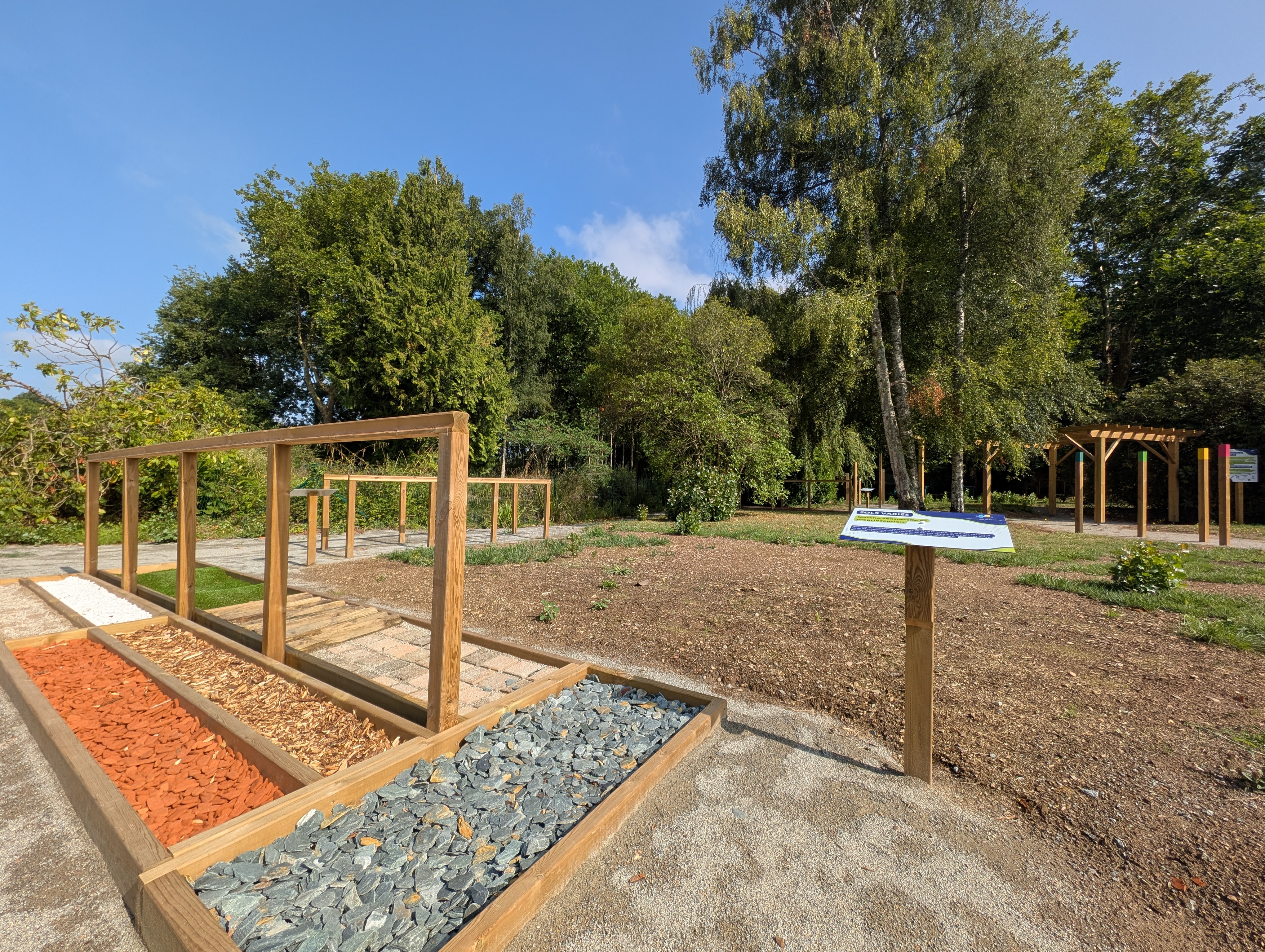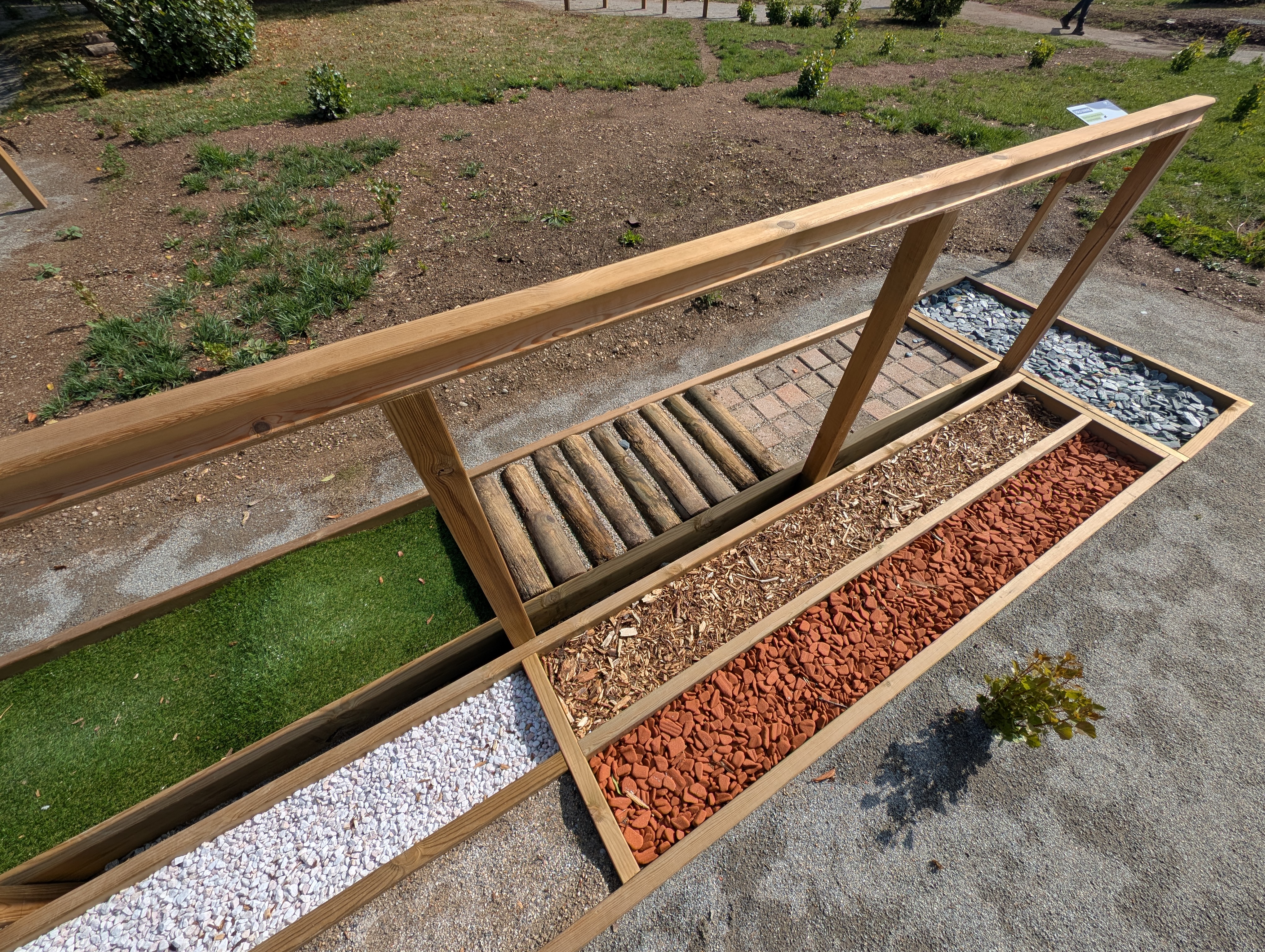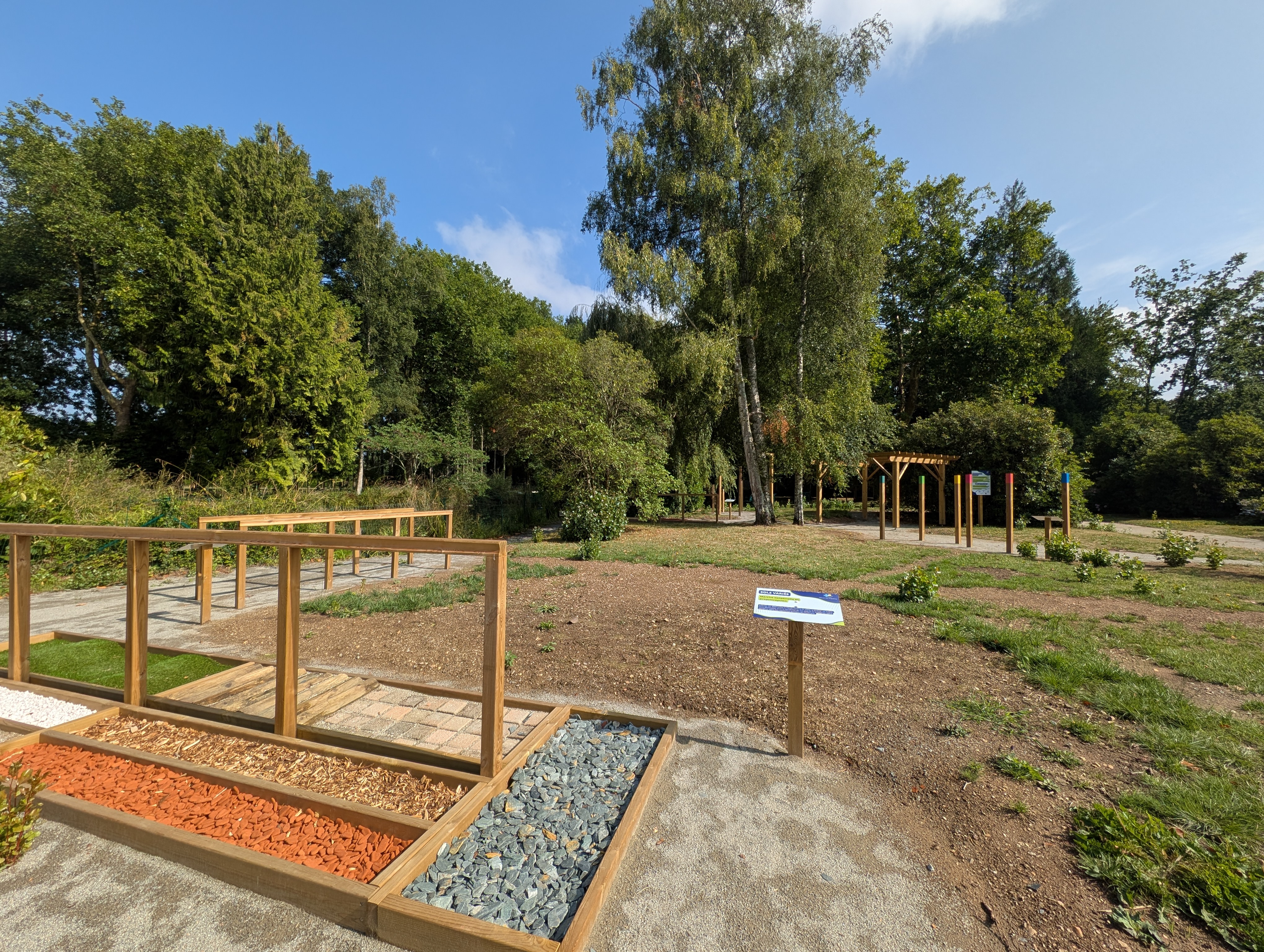 - ainsi qu’un parcours de santé, d’une surface de 300 m², qui comprend huit agrès pour permettre la rééducation des patients tout en travaillant la coordination, l’équilibre et la mémorisation.